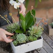 Position your plants in the planters based on their light and water requirements. Taller plants should go at the top, while trailing plants work well in the middle or bottom.