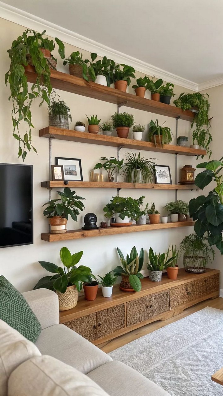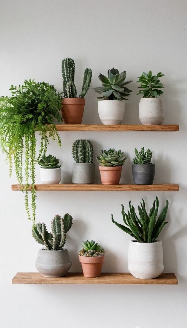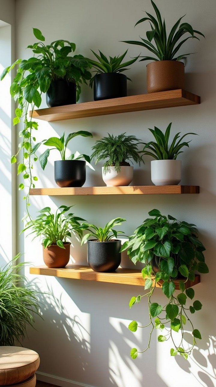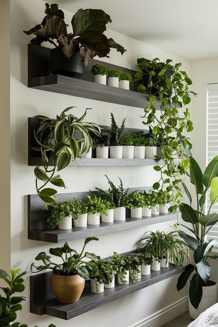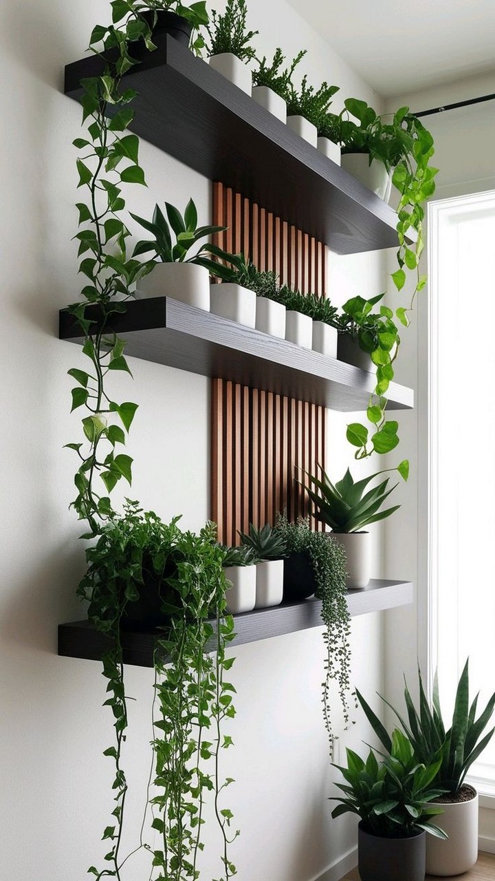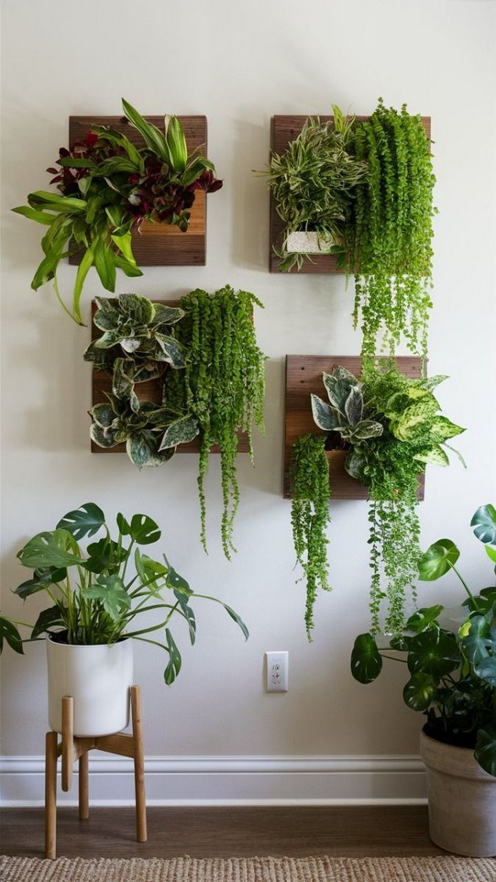 There are multiple ways to mount your plant wall, including wooden frames, metal grids, floating shelves, and pocket planters. Choose a system that matches your home’s aesthetic and space availability.