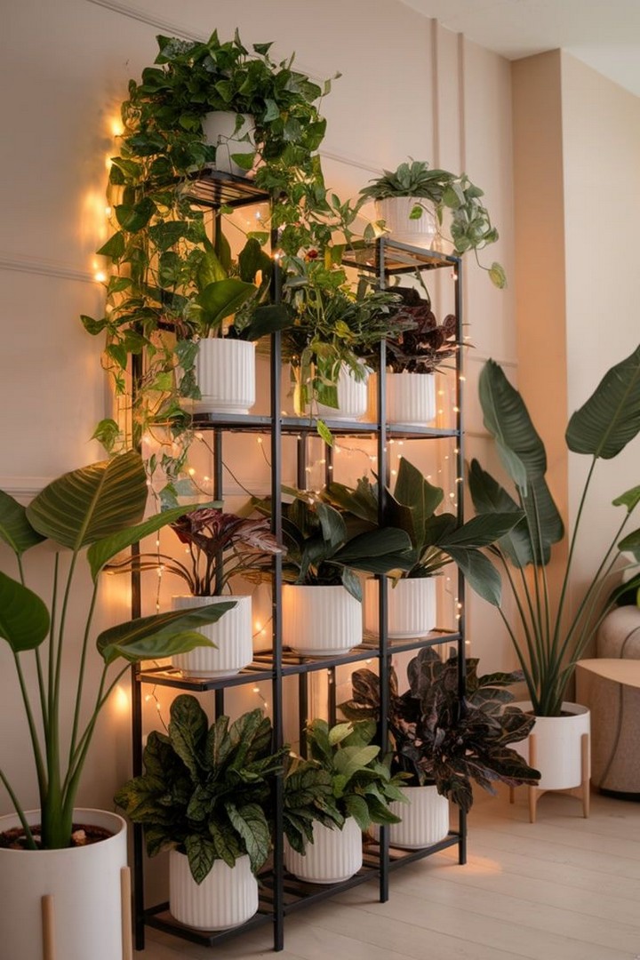 Enhance your plant wall with decorative items like fairy lights, artwork, or mirrors to add personality and charm.