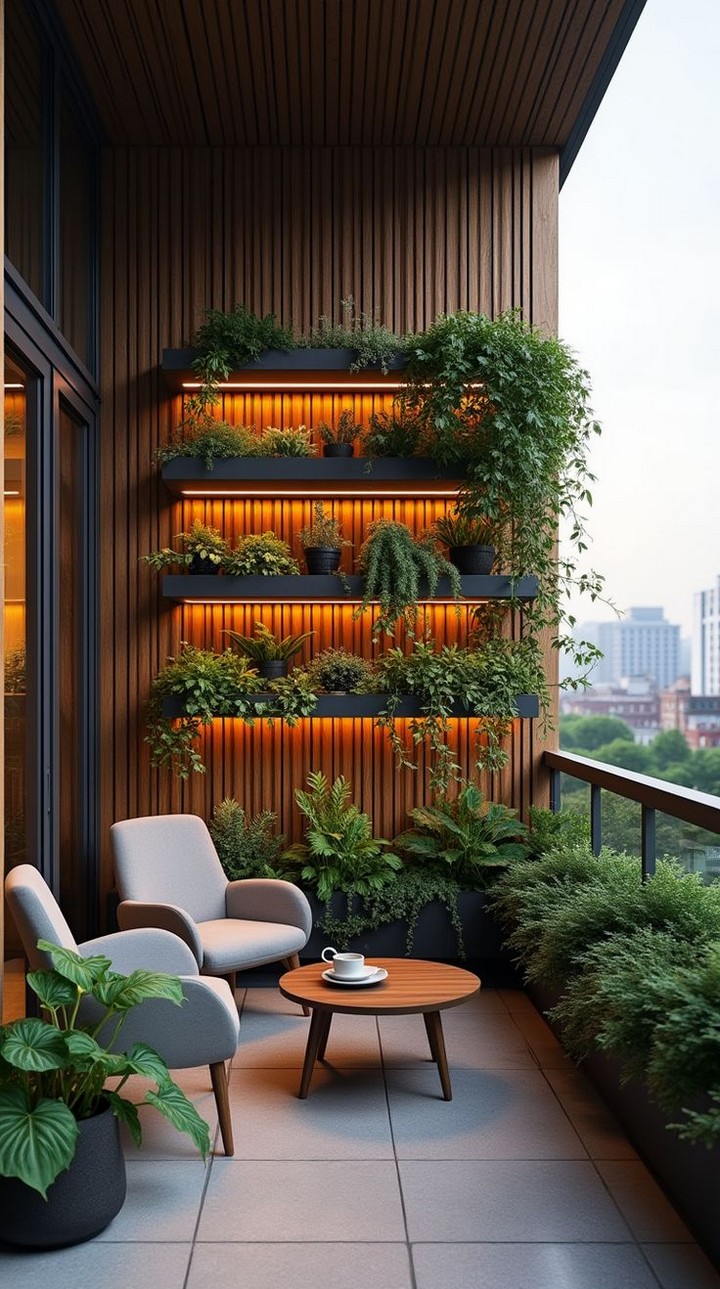 If your wall doesn’t receive enough natural light, install LED grow lights to keep your plants healthy and vibrant.