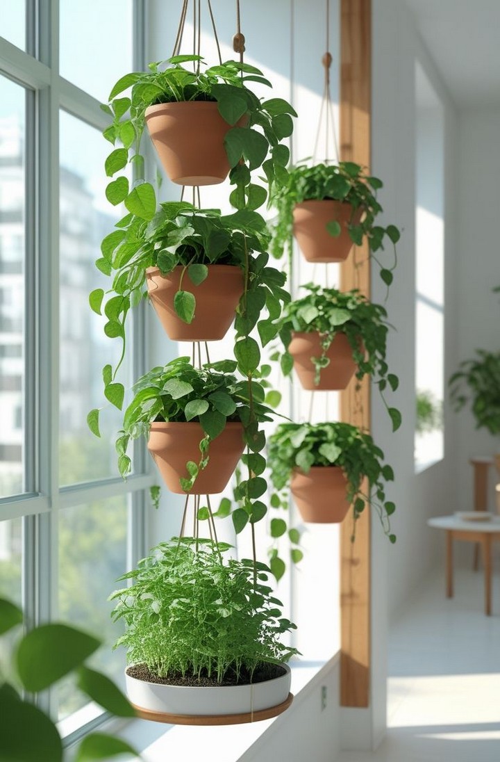Consider incorporating herbs like basil, mint, and rosemary for a functional and fragrant vertical garden.