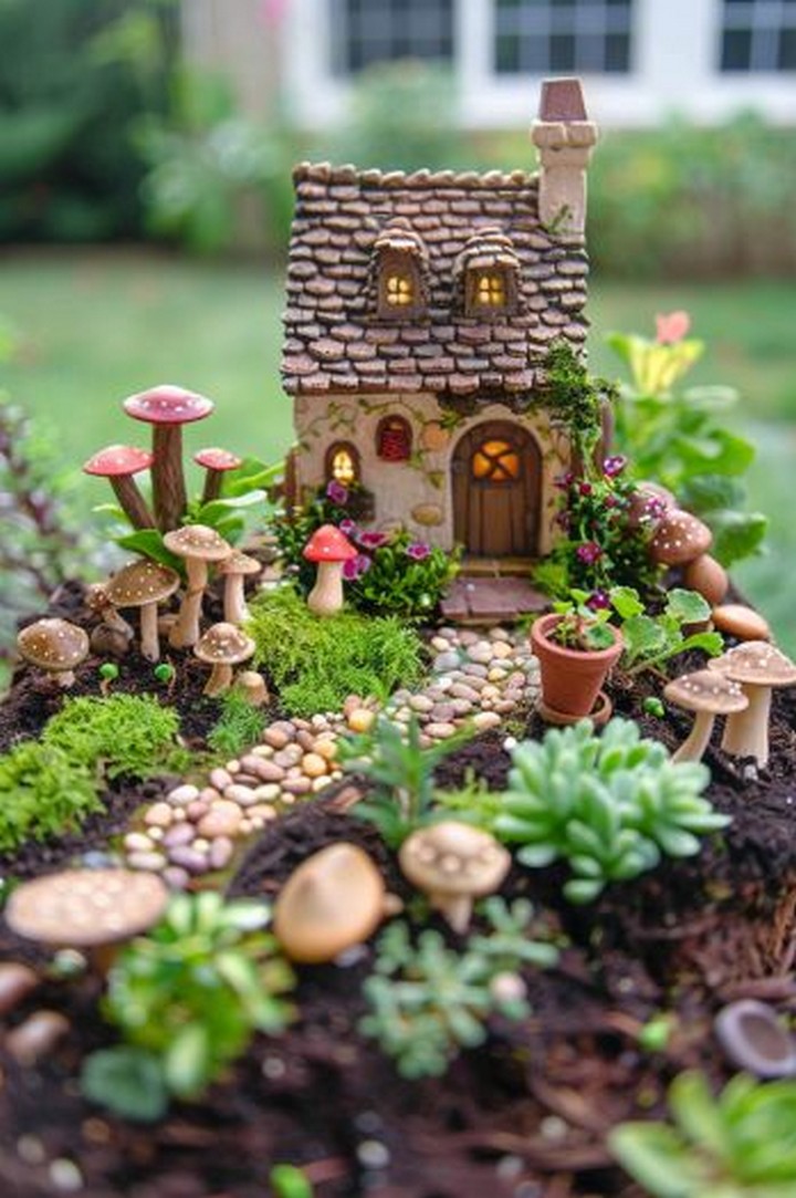 Combine the whimsical worlds of gnomes and fairies. Add gnome statues alongside fairy houses, creating a lively and diverse garden village.
