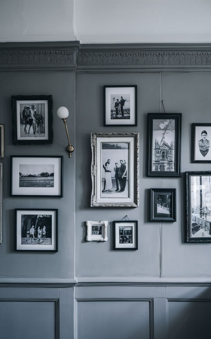 Create visual interest with a curated gallery wall using matching grey picture frames. Mix artwork, photographs, and prints for a personal touch that complements your grey palette.