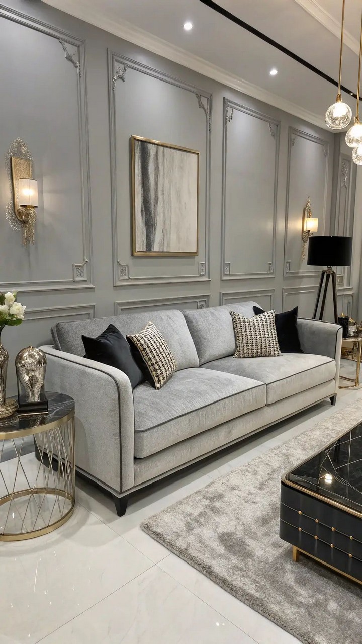 Introduce subtle patterns through grey geometric designs in wallpaper, throw pillows, or artwork. Keep patterns in the same color family for a sophisticated look.