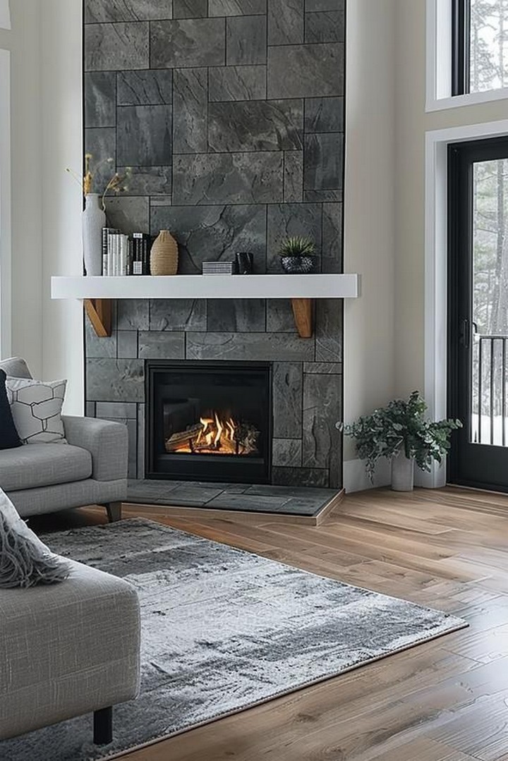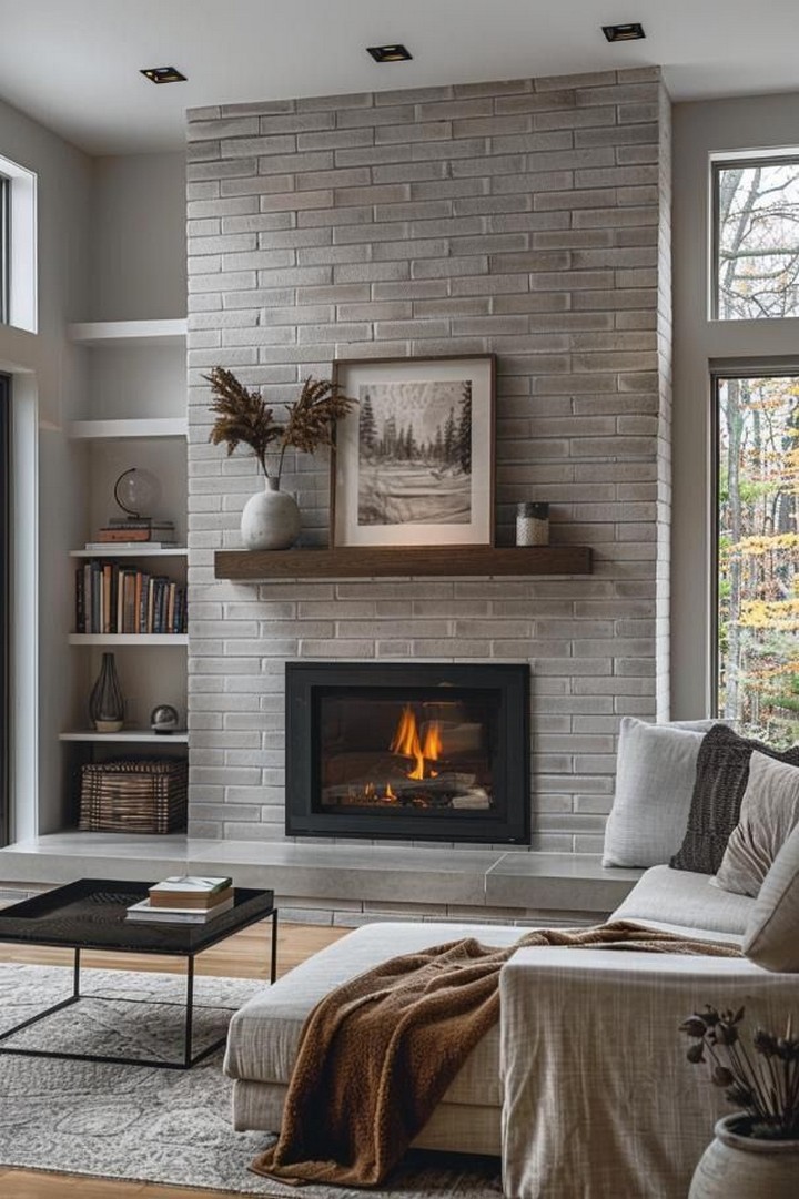 If you have a fireplace, consider grey stone cladding or painting existing brick in a sophisticated grey tone. This creates a stunning focal point that enhances the room’s cozy factor.