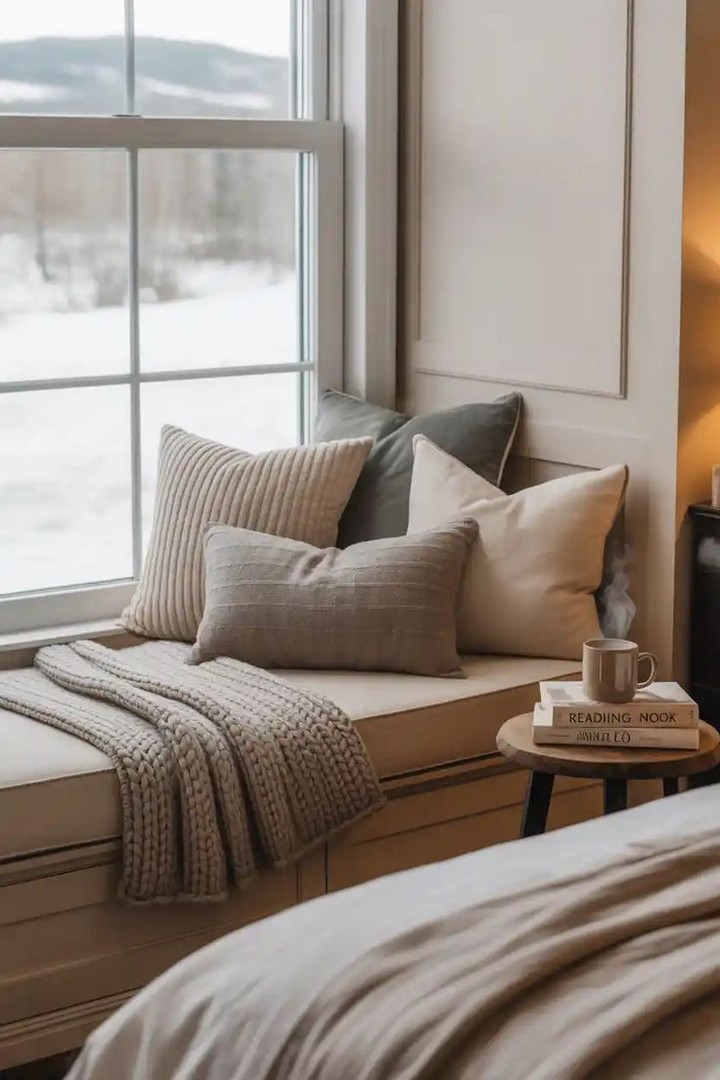 If you have built-in window seats, upholster them in grey fabric and add layers of grey throw pillows and blankets to create the ultimate cozy reading spot.