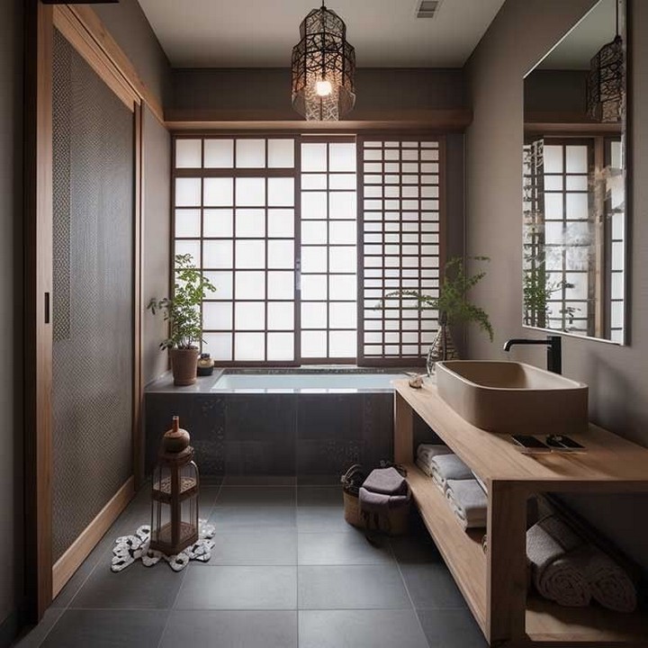 Traditional Japanese architecture uses shoji screens translucent paper panels in wooden frames—to create spaces with diffused, gentle light. Contemporary Japanese bathrooms often reference this tradition with modern materials that serve the same purpose: bringing natural light into the space while maintaining privacy.