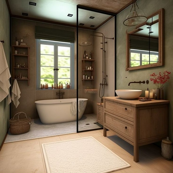 In bathroom applications, this might manifest as copper fixtures allowed to develop natural patina, stone elements with visible veining or natural variations, wood surfaces that gradually silver with exposure to water, or concrete elements that reveal subtle inconsistencies from the casting process. These “imperfections” create spaces with soul and character that deepen with time rather than deteriorate.