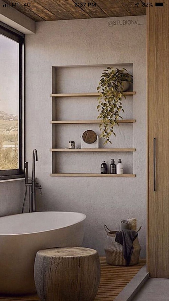 Traditional Japanese homes feature tokonoma recessed alcoves for displaying seasonal art or ikebana arrangements. Contemporary bathrooms often incorporate this concept with thoughtfully proportioned niches for both functional storage and decorative display.