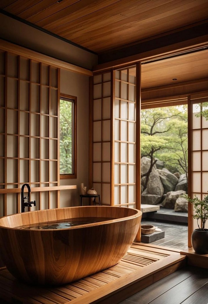 The ofuro a deep, compact soaking tub stands as the centerpiece of Japanese bathroom design. Unlike Western bathtubs designed for reclining, the traditional ofuro is deeper but shorter, allowing bathers to sit comfortably immersed to their shoulders with knees bent.