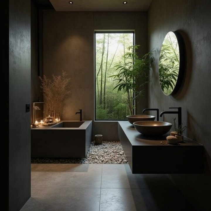 This principle proves particularly valuable in bathroom renovations where existing architectural constraints might prevent perfect symmetry—Japanese design principles offer ways to create visual harmony even with irregular spaces or offset features.