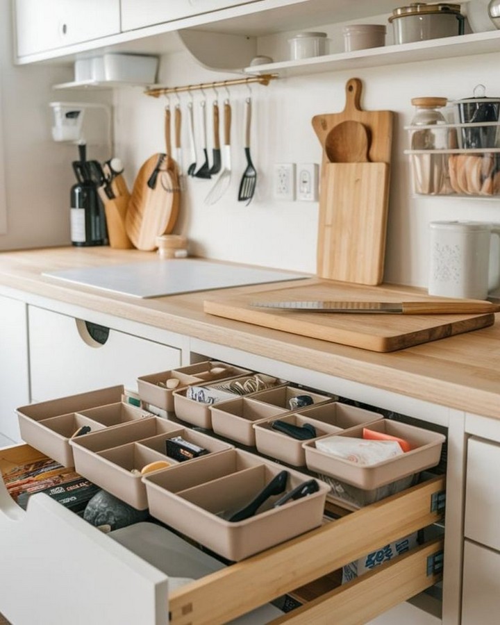 Cabinet doors and backs offer overlooked storage potential. Door-mounted spice racks, cutting board holders, or paper towel storage free up interior cabinet space for other items.