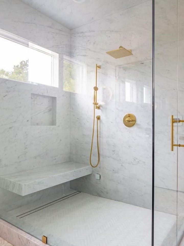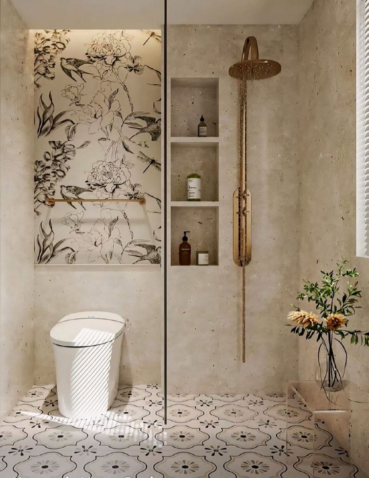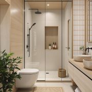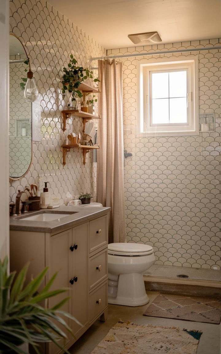 Combine cream, beige, and soft gray tiles to create spa-like serenity that feels expensive and calming.