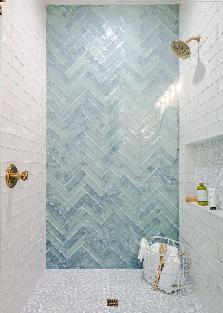 Rectangular tiles arranged in basket-weave configurations add sophisticated texture while maintaining clean, geometric lines.