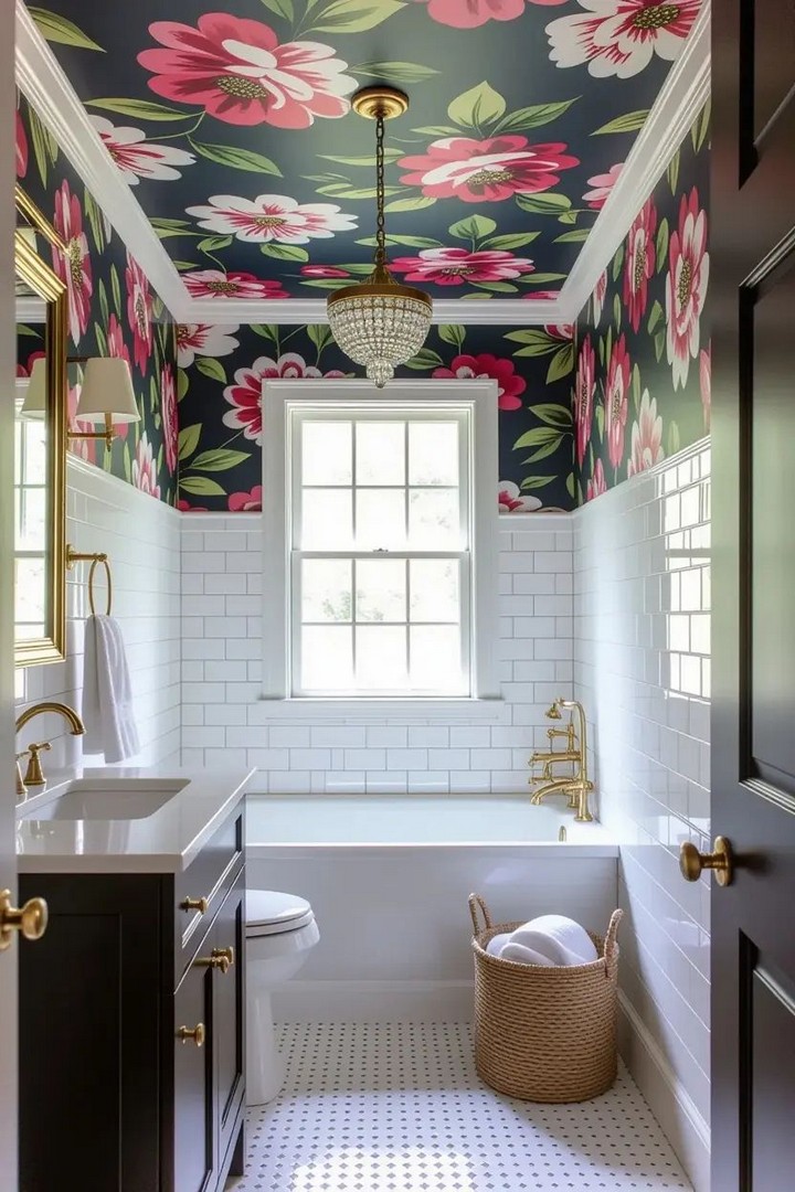 Transform your fifth wall with dramatic patterned tiles. Geometric designs or floral motifs on ceilings create unexpected luxury focal points that draw attention upward.