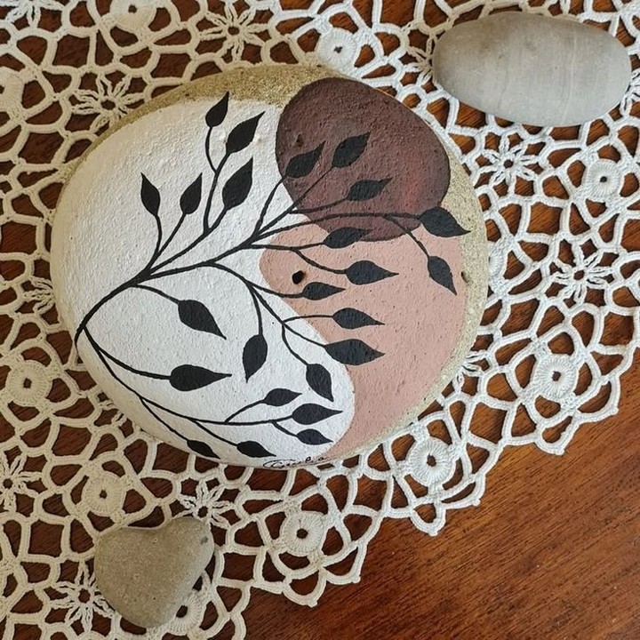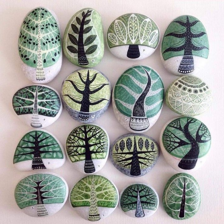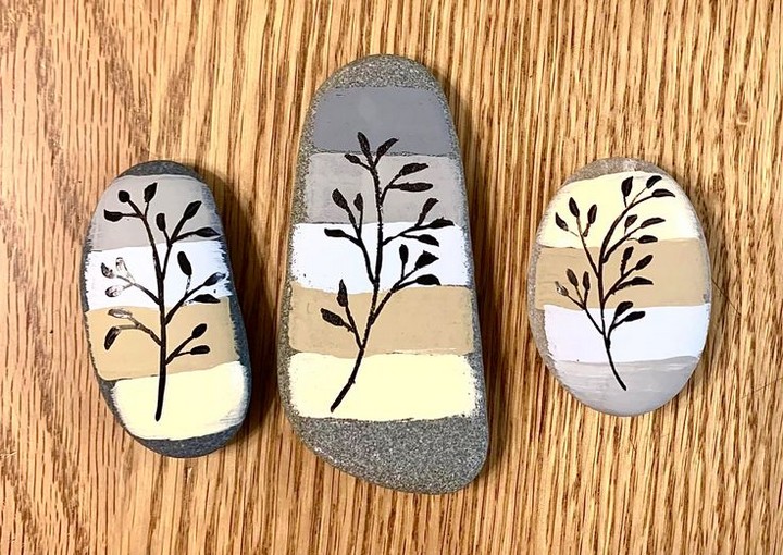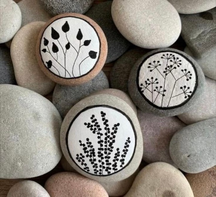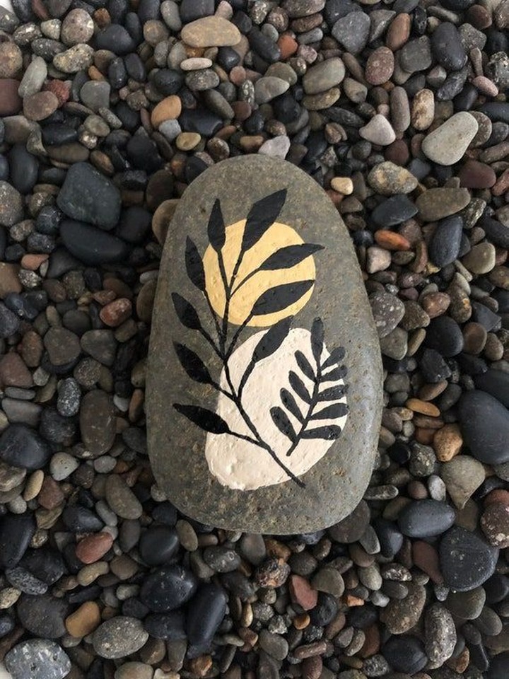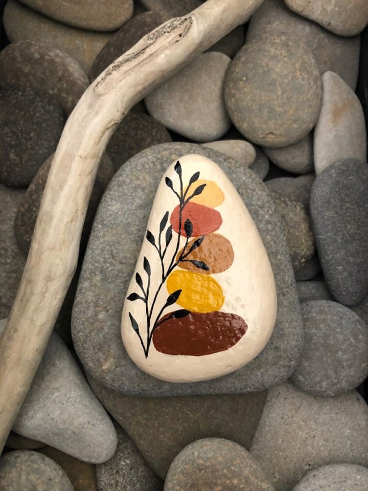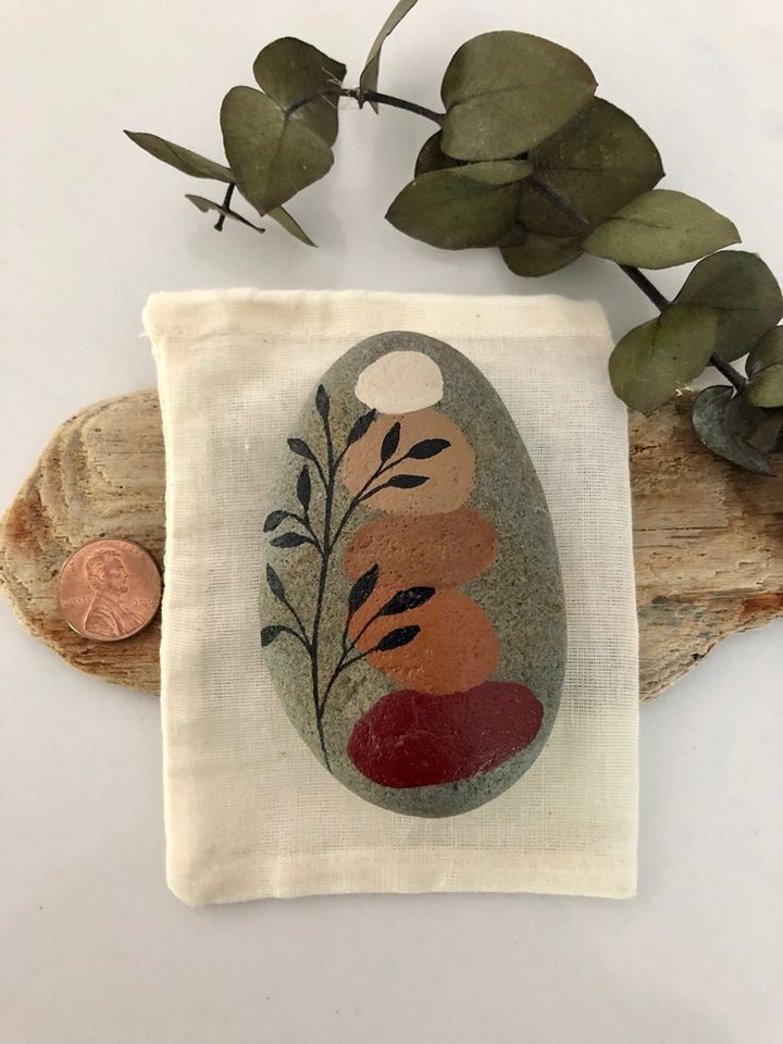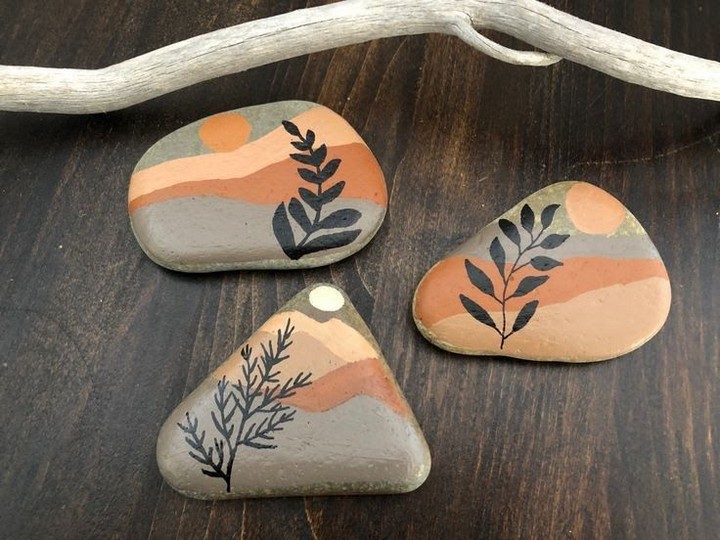 Create snowy landscapes with bare trees, snowflakes, or winter animals. Use white paint sparingly and let the stone’s natural color show through in places.