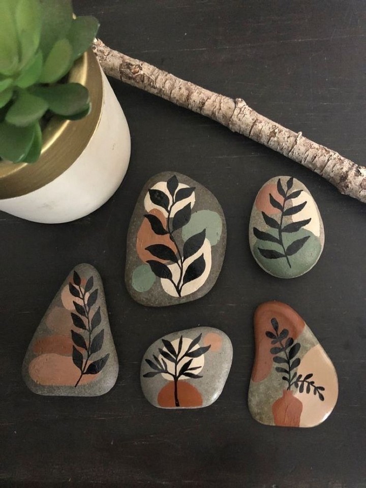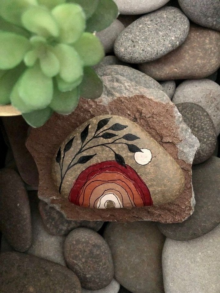 Paint forest creatures like foxes, owls, deer, or squirrels. Focus on distinctive features and use earth tones to maintain the natural woodland aesthetic. Consider painting just the animal’s face for maximum impact on smaller stones.