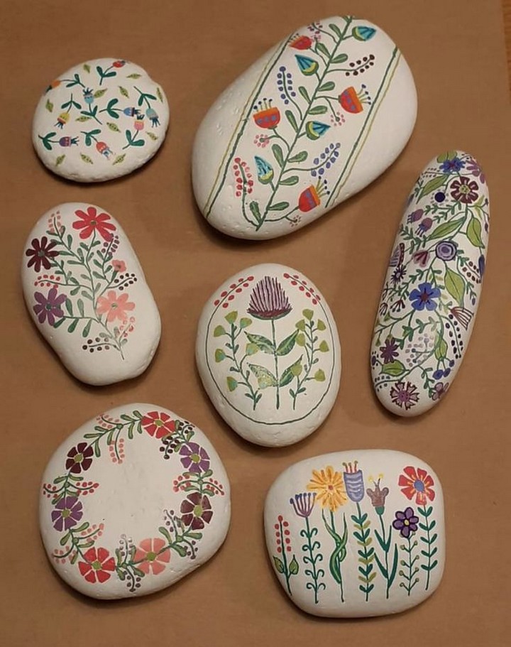 Acrylic paints offer the perfect balance of vibrant colors, quick drying time, and weather resistance. Invest in quality brushes ranging from fine detail brushes to broader flat brushes for base coats. A white or light-colored base coat often makes colors more vibrant, especially on darker stones.