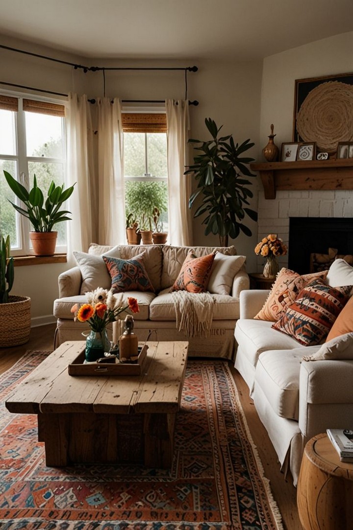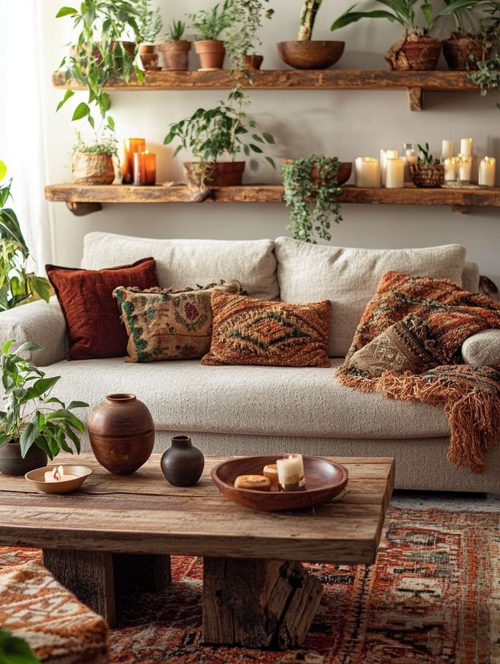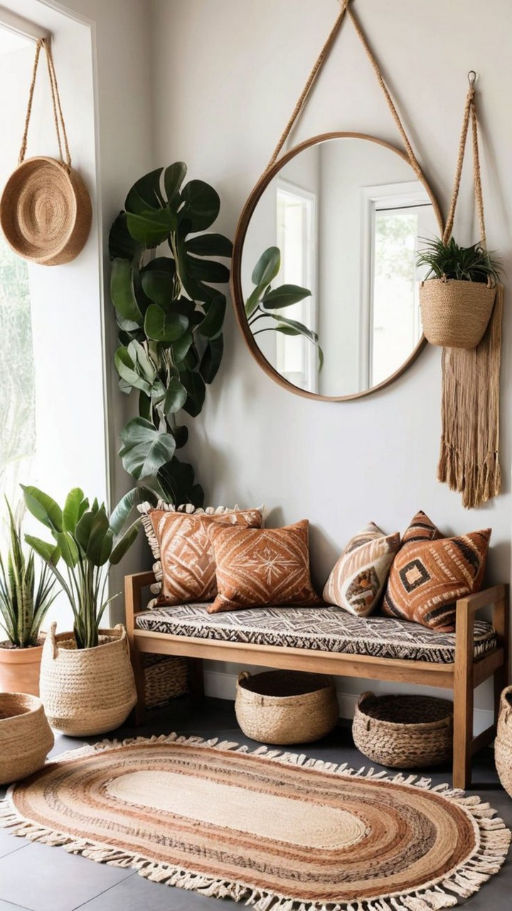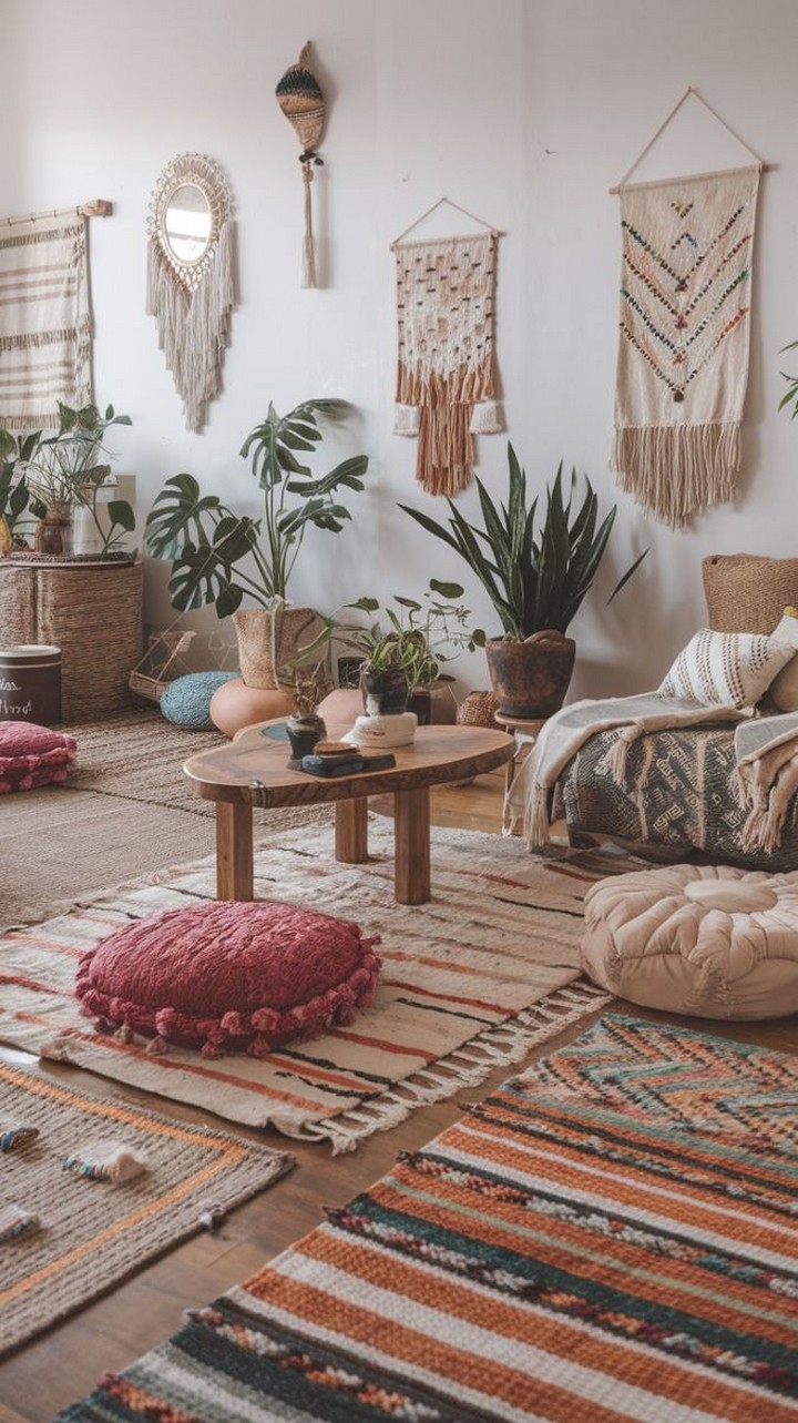 Create cozy, casual seating with floor cushions made from repurposed materials. Transform old pillows by covering them with affordable fabric remnants in earthy tones or global-inspired prints. Stack them in corners to create inviting conversation areas that embody the laid-back boho spirit.