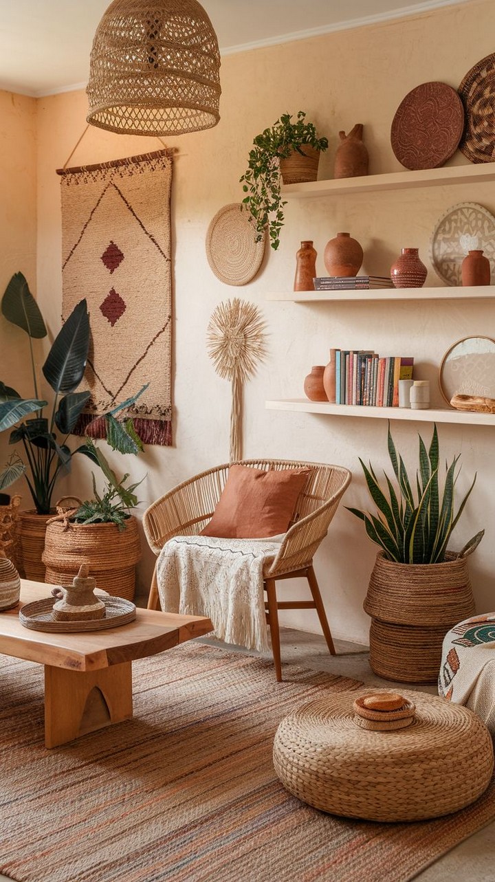 These natural objects introduce organic shapes and textures central to boho design while costing nothing but the time spent collecting them.