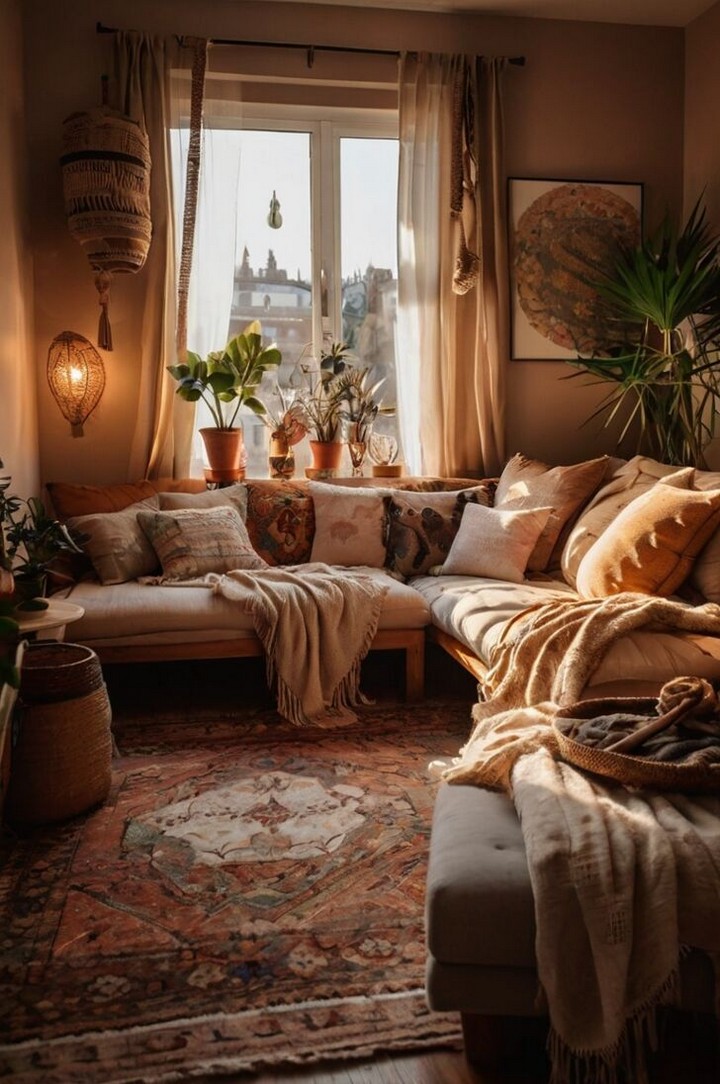 These warm, earthy tones instantly add boho sophistication. Paint an accent wall in terracotta or incorporate rust-colored textiles for an authentic southwestern vibe.