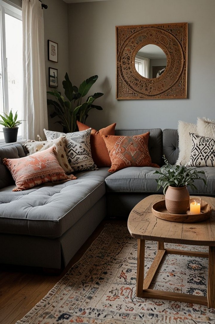 Combine a contemporary sectional with vintage Moroccan poufs or a mid-century modern chair with an antique wooden bench. This juxtaposition creates visual interest and tells a story.