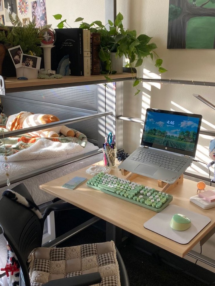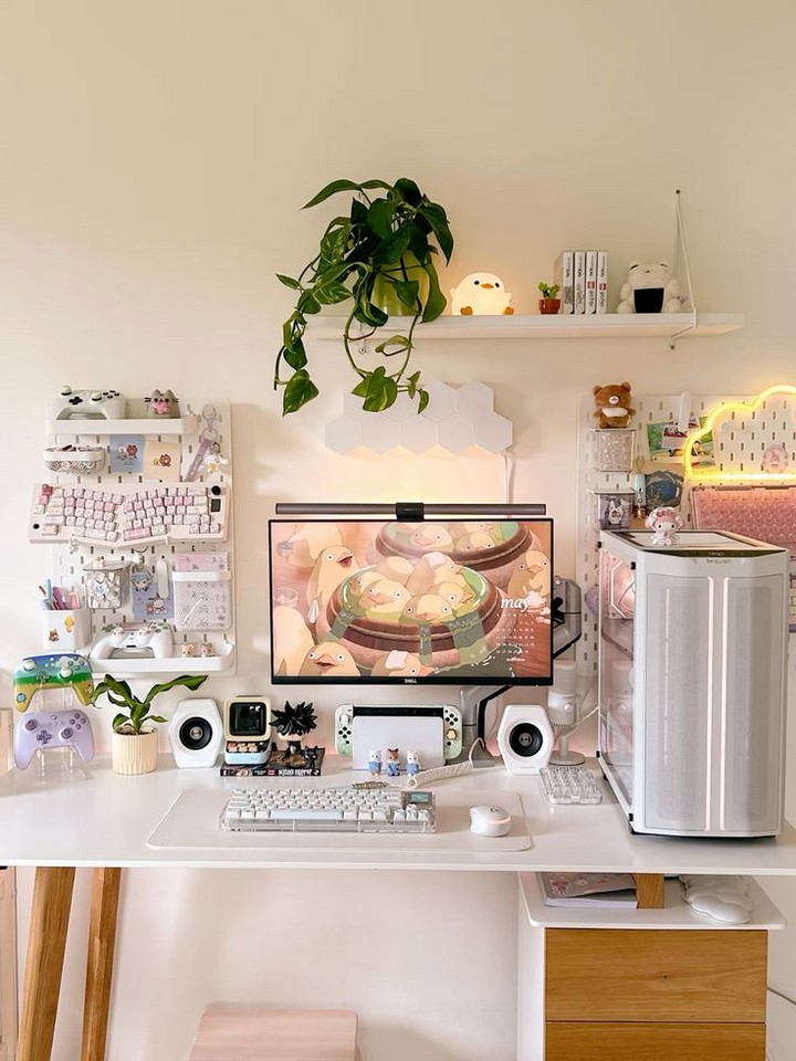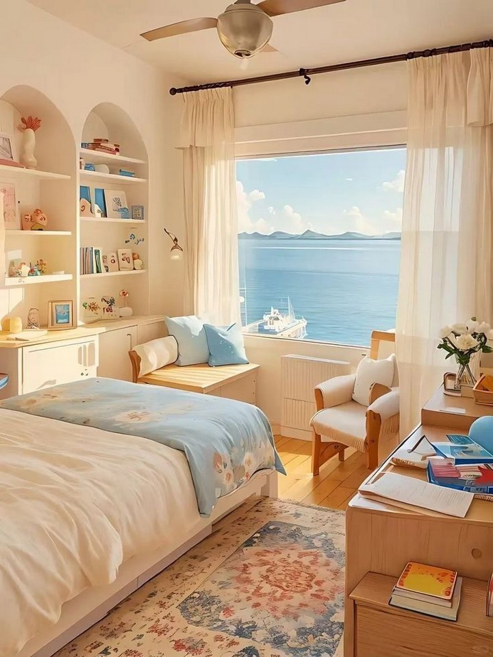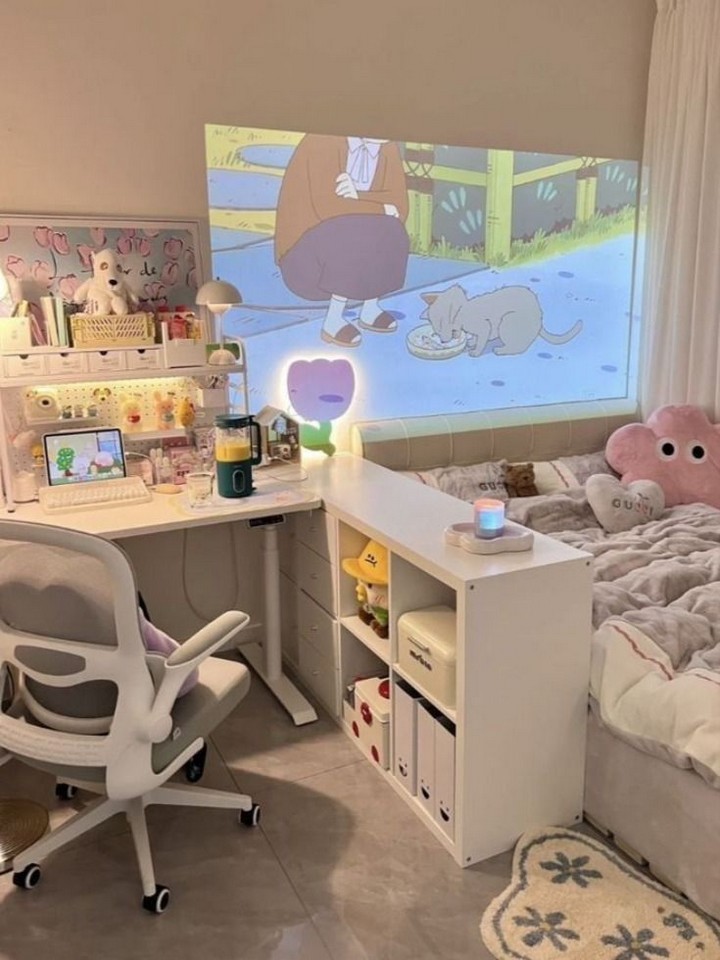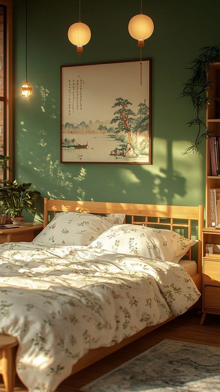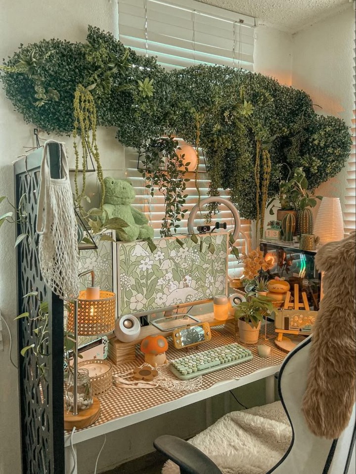 Stick to calming hues like sage green, dusty rose, cream, and warm browns. These colors provide a gentle, vintage ambiance and set the mood for a tranquil, Ghibli-inspired retreat.