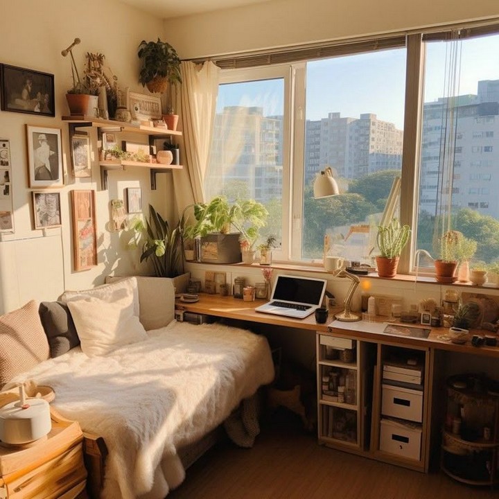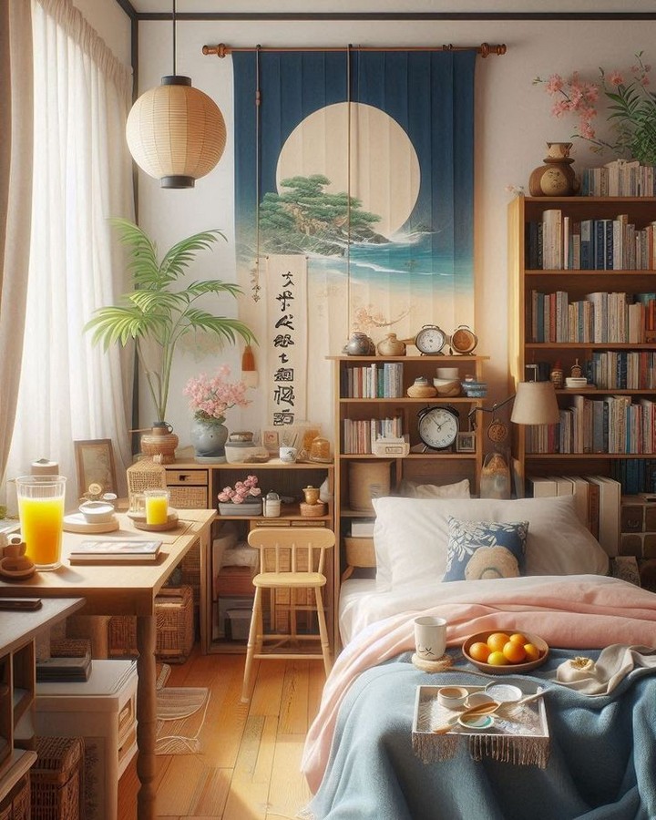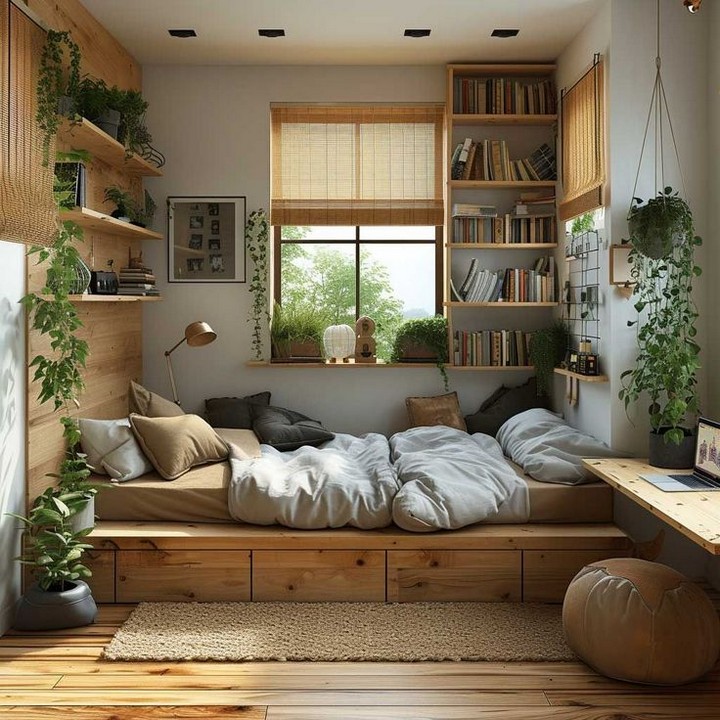 Install rustic wooden shelves to display your favorite books. Add vintage classics or titles featured in Ghibli films to build a whimsical, intellectual aesthetic.