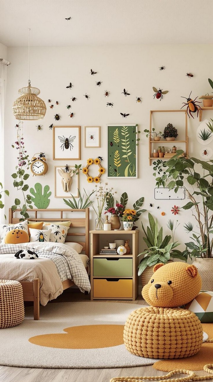 Craft mobiles using paper leaves, wooden shapes, or soft felt. These pieces, hung near windows or above beds, bring movement and whimsy to your decor.