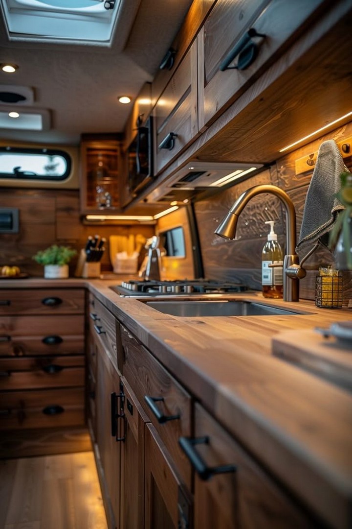 Whether you’re planning your first van build or upgrading an existing setup, this comprehensive guide explores 32 innovative Sprinter van galley kitchen ideas that maximize functionality without sacrificing style. From space-saving layouts to multi-functional fixtures, we’ll cover everything you need to know to create your perfect mobile cooking space.