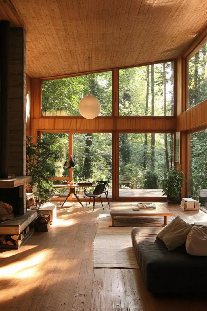 Slate, limestone, or local stone varieties appear in fireplaces, accent walls, or flooring, introducing organic texture and grounding the space. These elements connect the home to the earth and provide thermal mass that moderates temperature fluctuations.