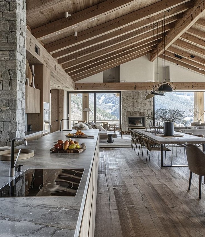 One of the most iconic features of rustic modern Scandinavian interiors is exposed wooden structural elements. Whether weathered antique timbers or new wood with a natural finish, these beams add warmth, character, and a connection to traditional building methods while defining the space architecturally.