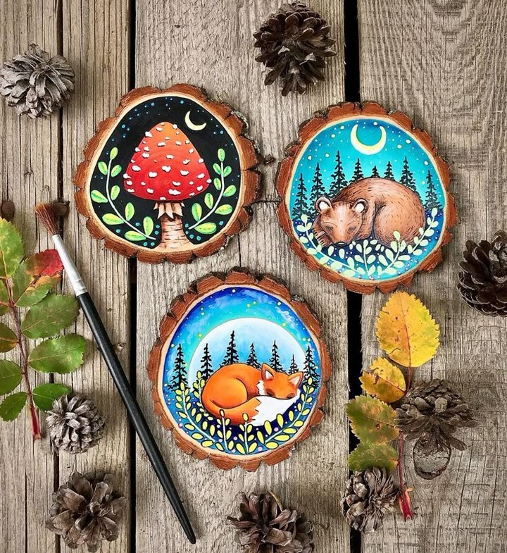 🎨 34 Unique Wooden Slice Painting Ideas