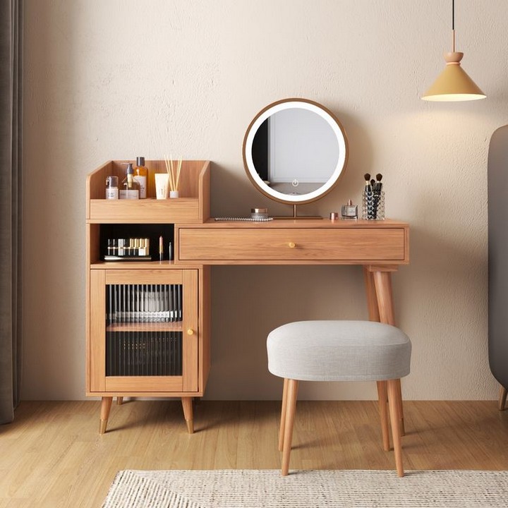 Tip: If you like a clutter-free look, choose a dressing table with closed drawers or cabinets to keep everything hidden and neat.