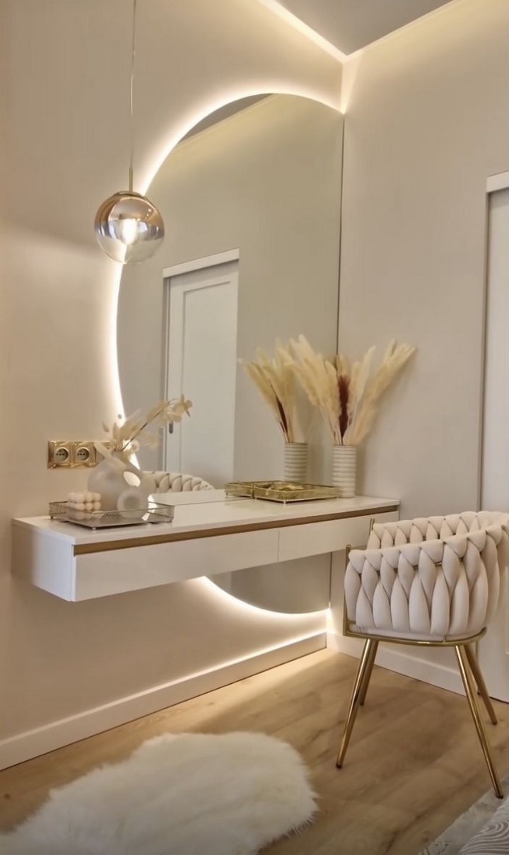 - Consider a corner dressing table if you’re working with limited space.