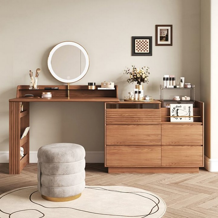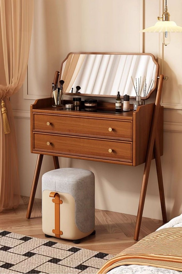 - Rustic Charm: A rustic or farmhouse-style dressing table with weathered wood and a simple, cozy design can be perfect for creating a warm, welcoming vibe.