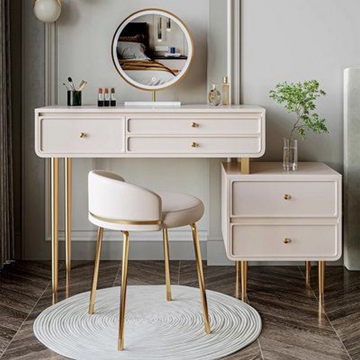 - Vintage Glam: A classic vintage dressing table, often with carved wood details, a mirror with intricate frame work, and metallic accents, adds a touch of luxury and elegance.