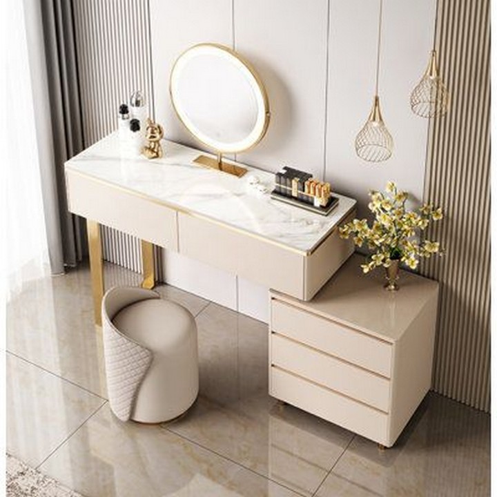 Having organized storage is crucial to maintaining a tidy dressing table. Many dressing tables come with built-in drawers, compartments, or shelves for storing makeup, jewelry, and other essentials. Here are some design options to consider: