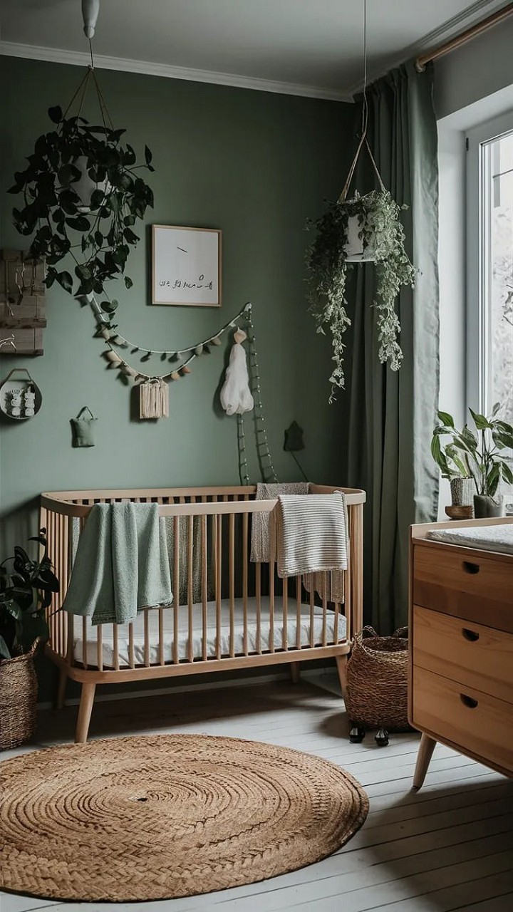 Install fabric or macramé wall pockets to store small items like pacifiers, burp cloths, or tiny books. These functional decorations add texture while keeping essentials within reach. Choose natural fibers and earthy colors to maintain your bohemian woodland aesthetic.