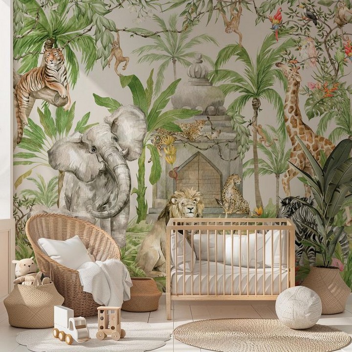 Create a focal point with a woodland-themed accent wall. Look for wallpaper featuring delicate forest scenes, stylized trees, or whimsical woodland creatures. Modern peel-and-stick options make this an accessible project even for rental homes, and they can be removed easily when your child outgrows the theme.