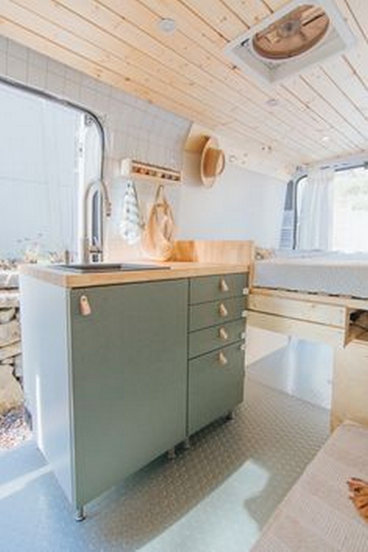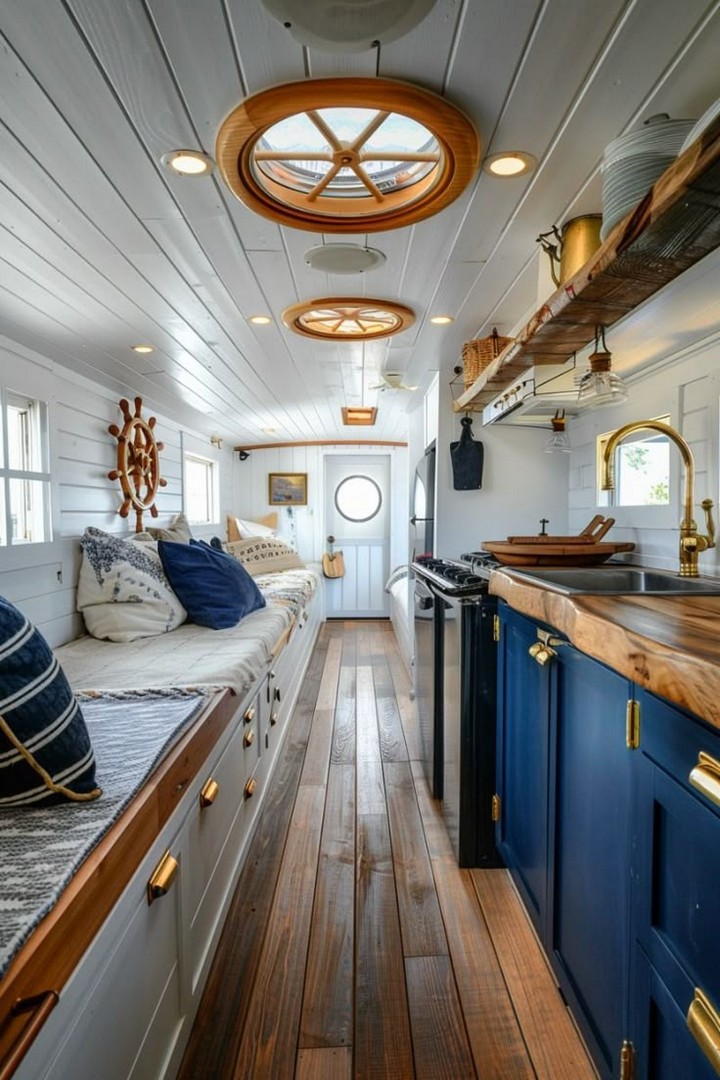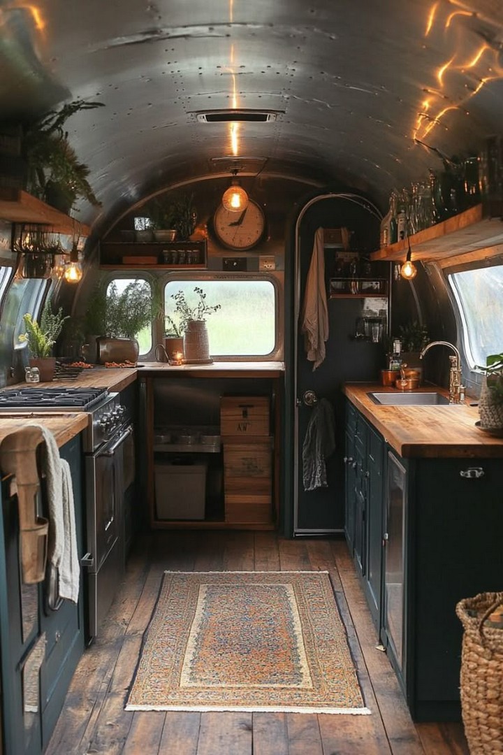 Drawing inspiration from boat design, galley kitchens in skoolies typically run along one side of the bus, creating an efficient cooking space that doesn’t obstruct the main traffic flow. This linear arrangement places appliances, sink, and prep areas in a logical workflow sequence.