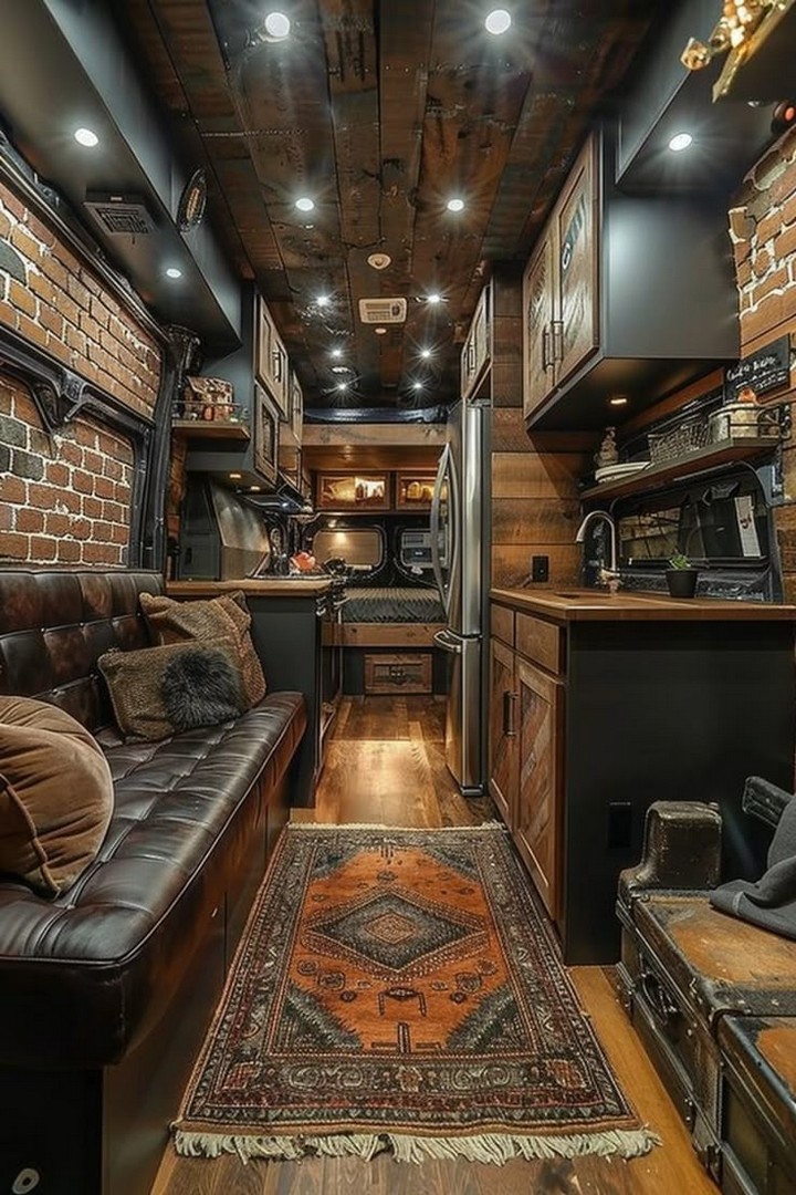 In open-concept skoolies, multifunctional furniture takes center stage. Think convertible sofas that transform into guest beds, dining tables that double as workstations, and kitchen islands that serve as both food prep areas and social gathering spots. The key to successful open-concept design lies in creating subtle zone distinctions through area rugs, ceiling treatments, or changes in flooring direction rather than physical walls.