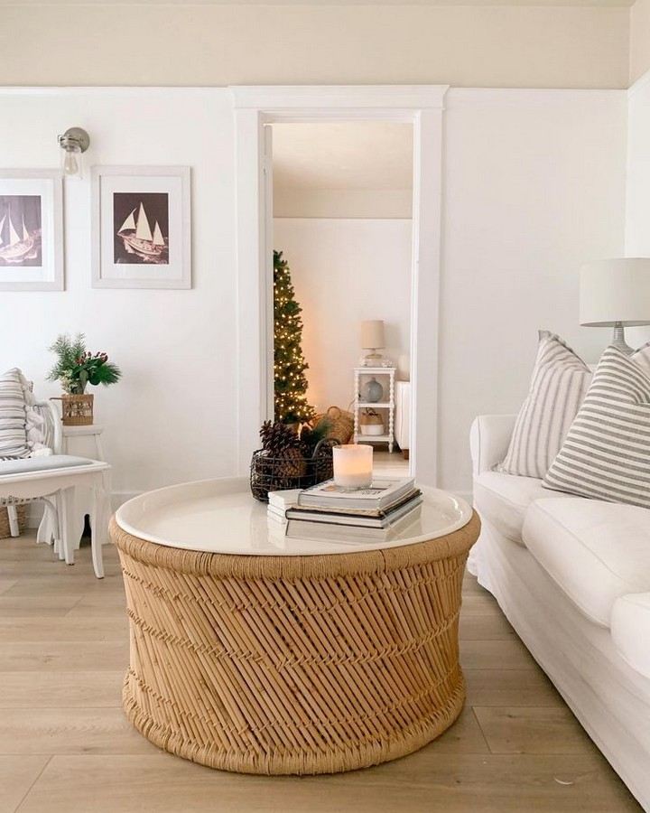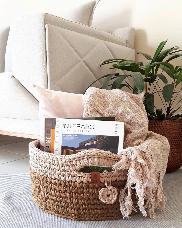 Incorporate woven baskets in natural materials like rattan or seagrass for stylish storage of throws, magazines, or toys.
