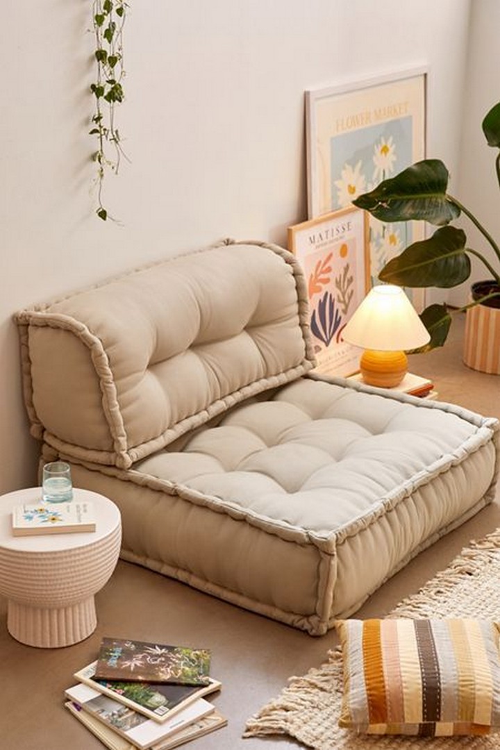Scatter large floor pillows around the seating area for additional comfort and a casual, bohemian touch that softens modern lines.