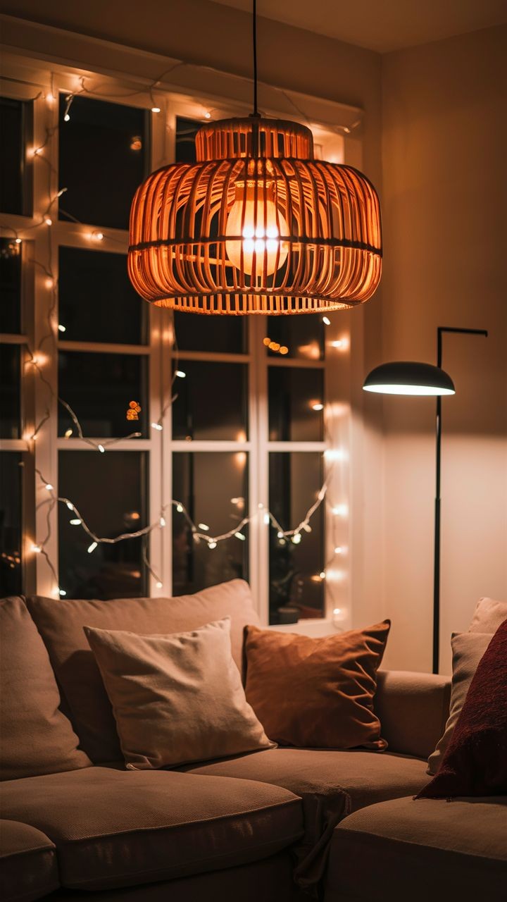 Install dramatic pendant lights with warm LED bulbs to create focal points while providing ambient lighting.