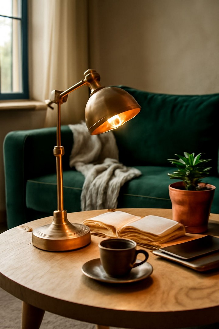 Choose sculptural floor lamps that serve as both functional lighting and art pieces, such as arc lamps or tripod designs.
