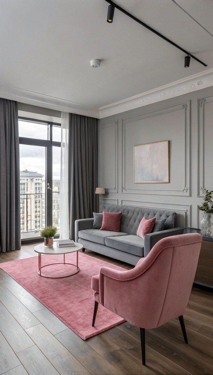 Create drama with charcoal gray walls while adding femininity through dusty pink textiles and accessories. This unexpected combination feels both edgy and cozy.