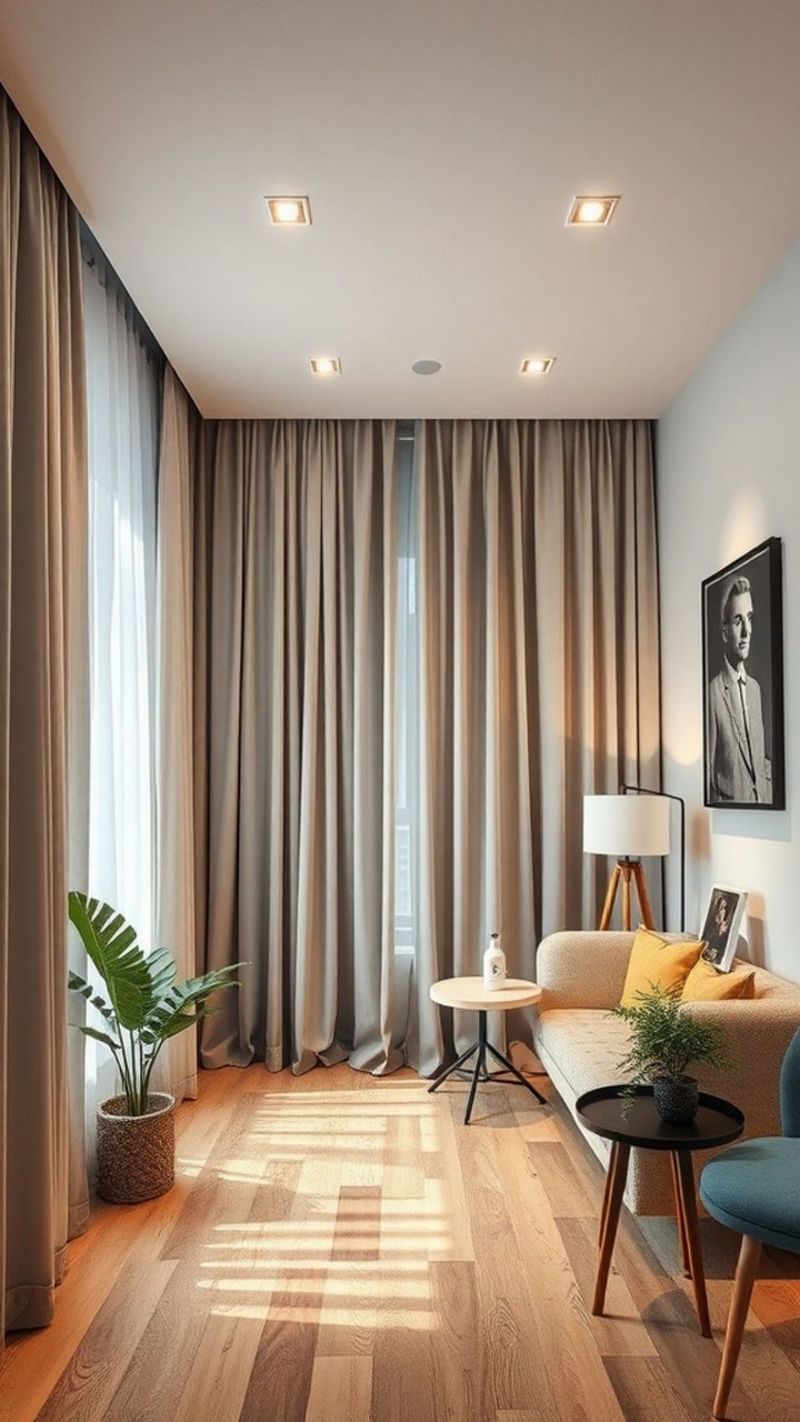 Select curtains in rich, unexpected colors like deep forest green or burnt orange to add personality to neutral rooms.