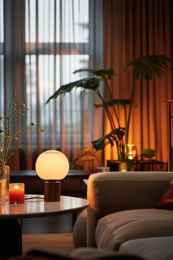 Group table lamps of varying heights and styles on side tables and consoles to create pools of warm light throughout the room.