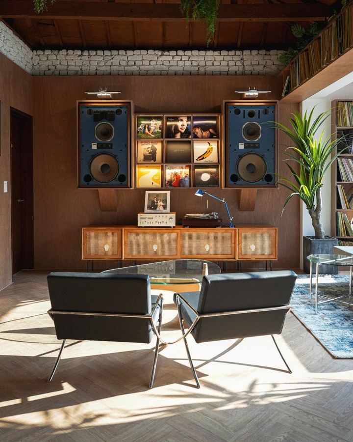 Integrate wireless speakers into bookcases or use furniture with built-in sound systems for entertainment without visible equipment.